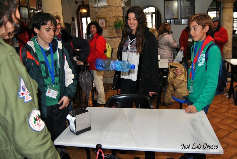 Y eso que en el Encuentro se coló un invitado con el que no se contaba, la lluvia y no poca: la visita del sábado a la ciudad estuvo literalmente pasada por agua. Pero, no restó ni un ápice al ambiente de “familia scout” que pudimos disfrutar. Allí estuvo presente el espíritu de nuestra ley “el scout/guía es animoso y sonríe ante las dificultades” y el acertado lema del Encuentro: “La amistad siempre es provechosa”.